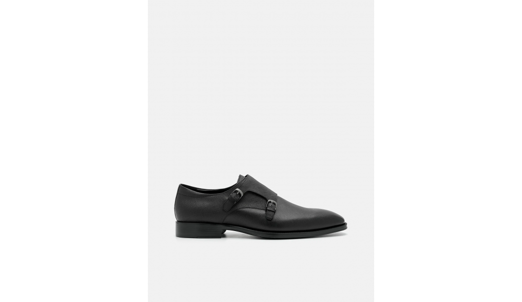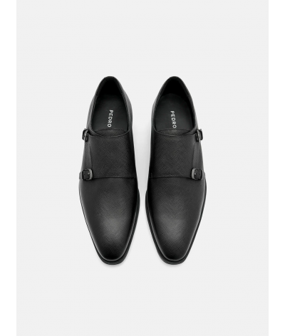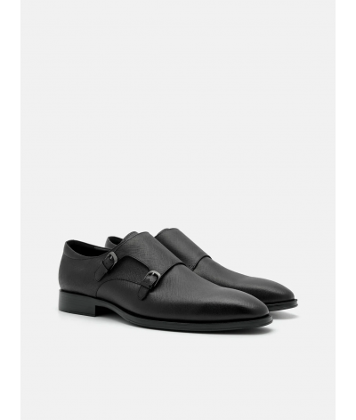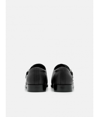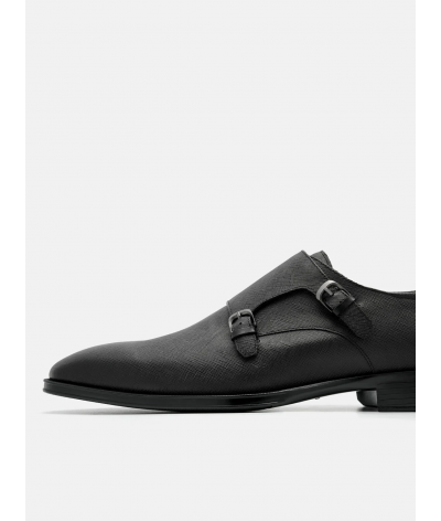 Saffiano Leather Monkstrap Shoes feature metal buckles and a pointed toe for a sharp profile, blending texture and structure with refined motion.
