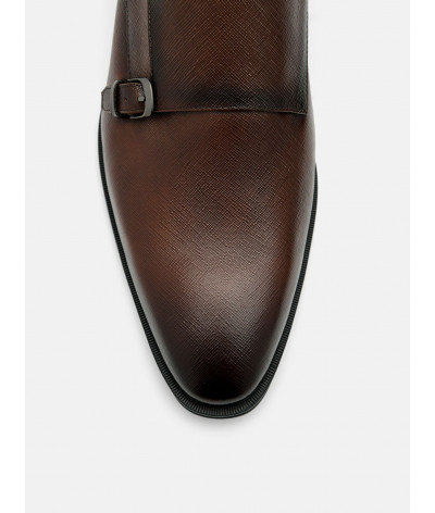 Saffiano Leather Monkstrap Shoes feature metal buckles and a pointed toe for a sharp profile, blending texture and structure with refined motion.