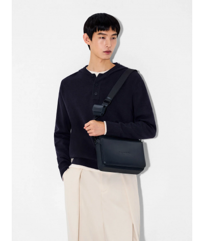 A refined take on everyday utility, this crossbody is defined by its boxy silhouette and pared-back detailing. Crafted with precision and minimal embossed branding, it features a clean zip closure that underscores its refined design.