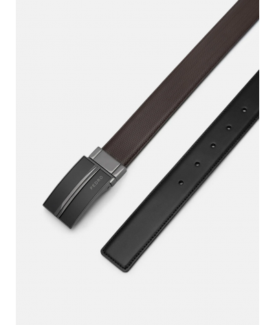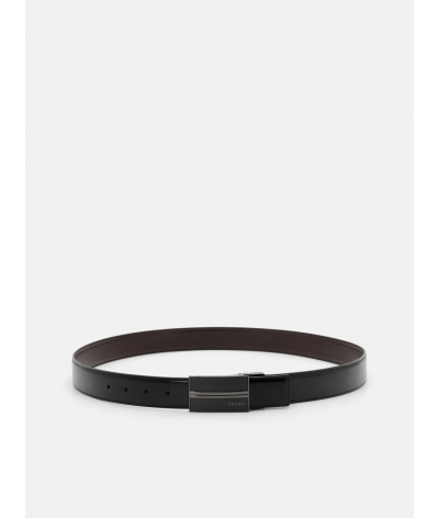 Constructed from supple cow leather, this reversible belt toggles seamlessly between black and brown, offering versatile styling for a considered wardrobe. A tang closure anchors the design with understated precision, making it a refined accessory for elevated, modern outfits.