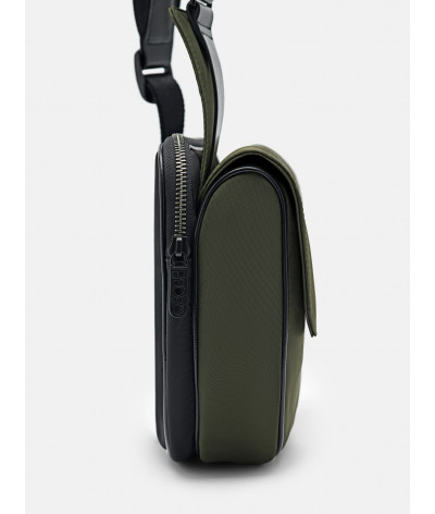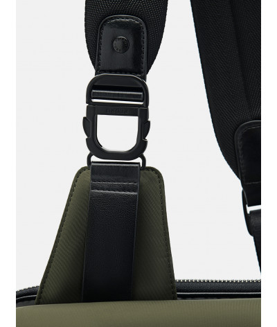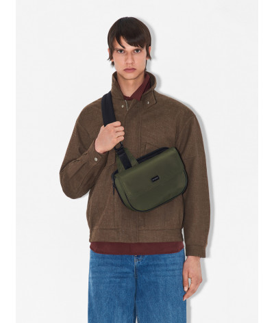 Effortless yet essential, the compact, rounded silhouette flows with modern rhythm. Crafted from multitexture nylon and microfiber, the magnetic closure and dark hardware complete the design.