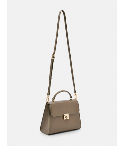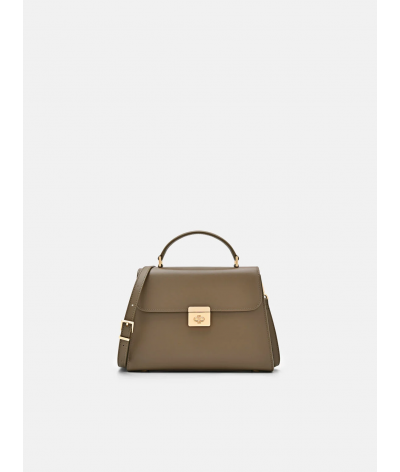 Clean lines meet considered construction in the Leather Handbag, designed with a sharp, professional edge. The structured silhouette is crafted from smooth calf leather, punctuated with gold-tone hardware that catches the light without overpowering the form. A top flap and push-lock closure keep the design minimal yet functional, reinforcing its precise feel.