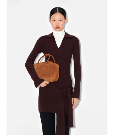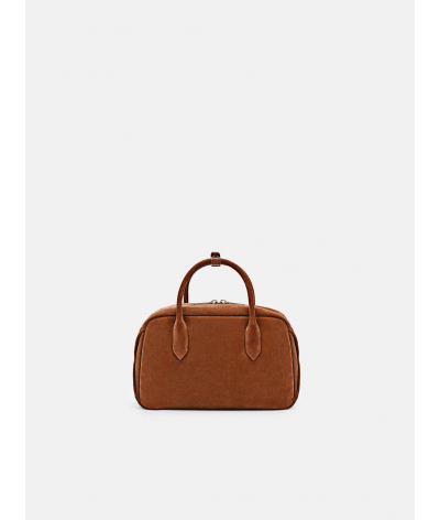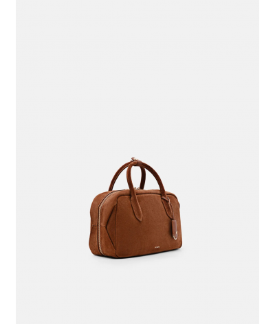 The Leather Bowling Bag distils minimalism into a soft, sculptural form. Crafted from smooth calf leather in a single tone, the design embraces a rounded silhouette that feels both modern and considered. A detachable shoulder sling adds versatility, while a subtle keyring tag brings a hint of utility to the refined composition.