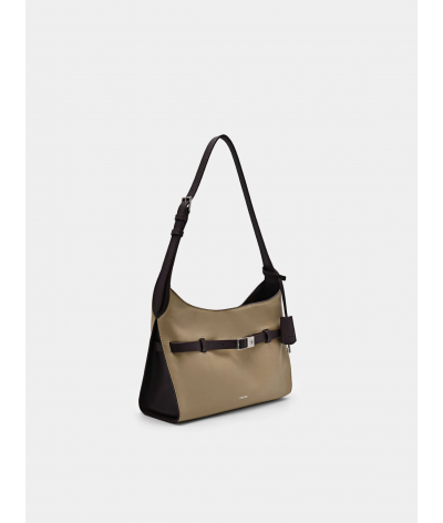 The Shoulder Bag reworks classic design codes through a softer, more fluid lens. Its slouchy calf leather construction brings a sense of ease, contrasted by a structured belt accent that cuts clean across the body of the bag. Branded hardware and a magnetic closure keep the details minimal but intentional.