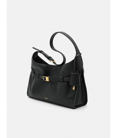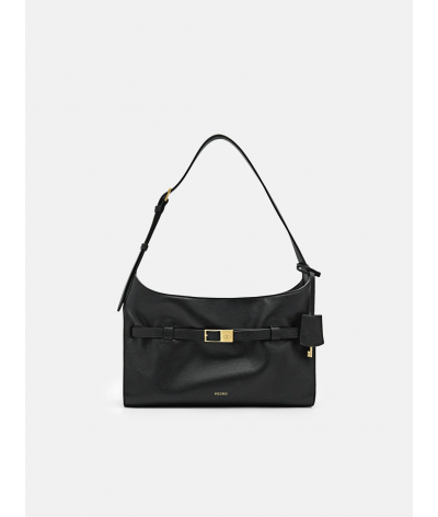 The Shoulder Bag reworks classic design codes through a softer, more fluid lens. Its slouchy calf leather construction brings a sense of ease, contrasted by a structured belt accent that cuts clean across the body of the bag. Branded hardware and a magnetic closure keep the details minimal but intentional.