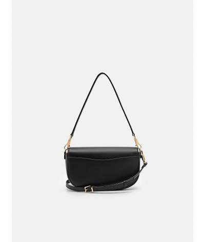 The Leather Shoulder Bag brings structure and softness into sharp balance. Its rounded silhouette is defined by a clean top flap and finished with tonal monogram detailing that whispers branding rather than shouts it. Crafted from calf leather and accented with gold-tone hardware, the bag balances classic codes with a contemporary lens.