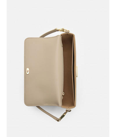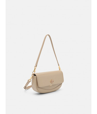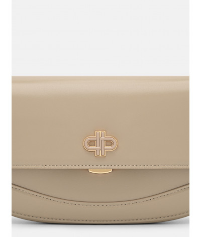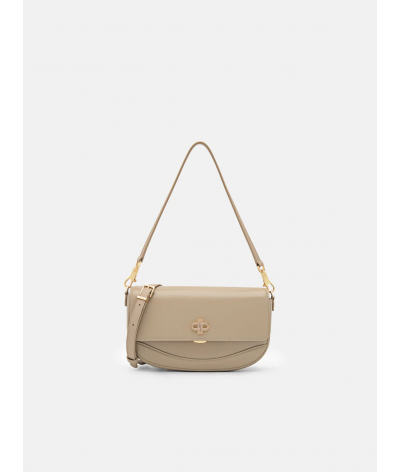 The Leather Shoulder Bag brings structure and softness into sharp balance. Its rounded silhouette is defined by a clean top flap and finished with tonal monogram detailing that whispers branding rather than shouts it. Crafted from calf leather and accented with gold-tone hardware, the bag balances classic codes with a contemporary lens.