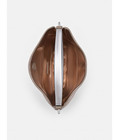 Soft curves and a clean silhouette give the Lia Shoulder Bag its distinct presence, where minimalism meets quiet drama. The modern hardware handle adds a sculptural edge, bringing structure to the bag’s fluid form without overpowering it. Designed with a detachable wristlet for styling versatility, it leans dressy without feeling overly formal.