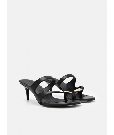 Glinting with gold hardware, these sandals pair a strappy kid leather upper and delicate toe loop with a slim post heel, catching light at every step. Effortless yet sharp, they turn everyday wear into a subtle, confident statement of modern elegance.
