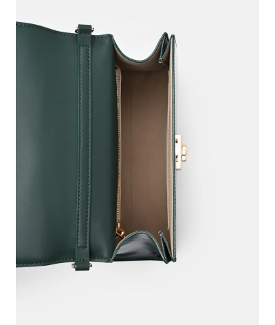Clean lines meet considered construction in the Leather Handbag, designed with a sharp, professional edge. The structured silhouette is crafted from smooth calf leather, punctuated with gold-tone hardware that catches the light without overpowering the form. A top flap and push-lock closure keep the design minimal yet functional, reinforcing its precise feel.