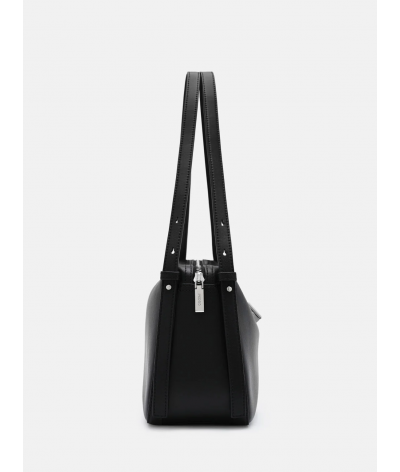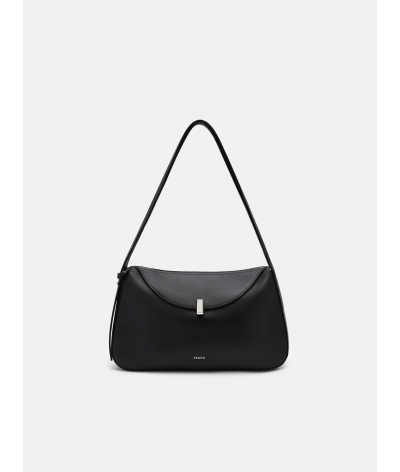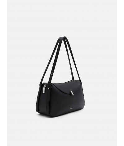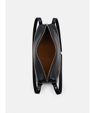 Cut from smooth calf leather, this piece plays with fluidity and form, its rounded silhouette echoing a sculptural calm. Cool hardware punctuates the surface with restraint, allowing the shape to speak in a language of motion, material, and modern clarity.